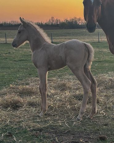 This fancy palomino filly should have some size and will suit many disciplines, including roping, and barrel racing. Her dam is 3/4 sister to RCD Hollywood Seven who is an up and coming barrel horse, hitting the top of the 1D at some jackpots in 2024. Seven is also super handy in a pen of cows. Seven is pictured in the gallery below. Photo Credit to Wildwood Photography.